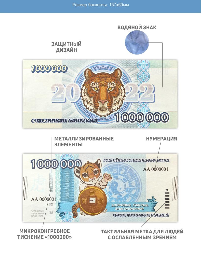 Россия, С Новым 2022 годом Тигра, банкнота 1 000 000