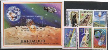Барбадос, 10 Лет Высадке на Луну, 1979, 6 марок + блок