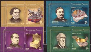 Россия, 2018, Сокровища России. Ювелиры 4 марки с купонами