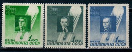СССР, 1944, №880-82, Памяти стратонавтов, серия из 3-х марок...