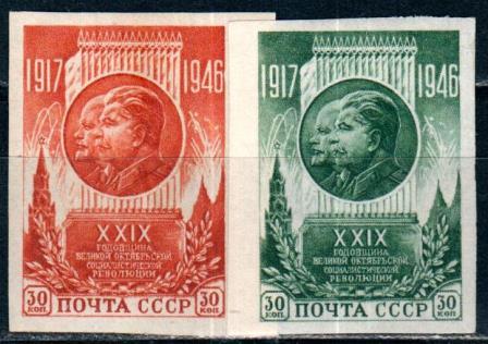 СССР, 1946-47, №1093-94, Годовщина Октября, б.з. серия из 2-х марок...
