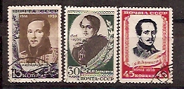 СССР, 1939, №714-16, М.Ю.Лермонтов, серия из 3-х марок, (.)_