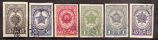 СССР, 1945, №946-51, Ордена, серия из 6-ти без зубцовых марок, (.)...