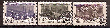 СССР, 1945, №973-75, Разгром под Москвой, серия из 3-х марок, (.)...