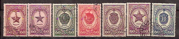СССР, 1946, №1039-45, Ордена и медали (I), серия из 7-ми марок, (.)...