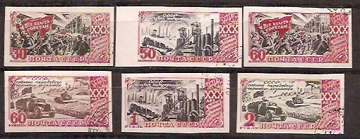 СССР, 1947, №1179-84, 30-летие Октября, серия из 6-ти без зубцовых марок, (.)...