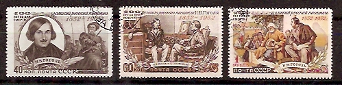 СССР, 1952, №1674-76, Н.Гоголь, серия из 3-х марок, (.)...