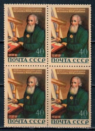 СССР, 1956, № 1885, И.Кулибин, квартблок..