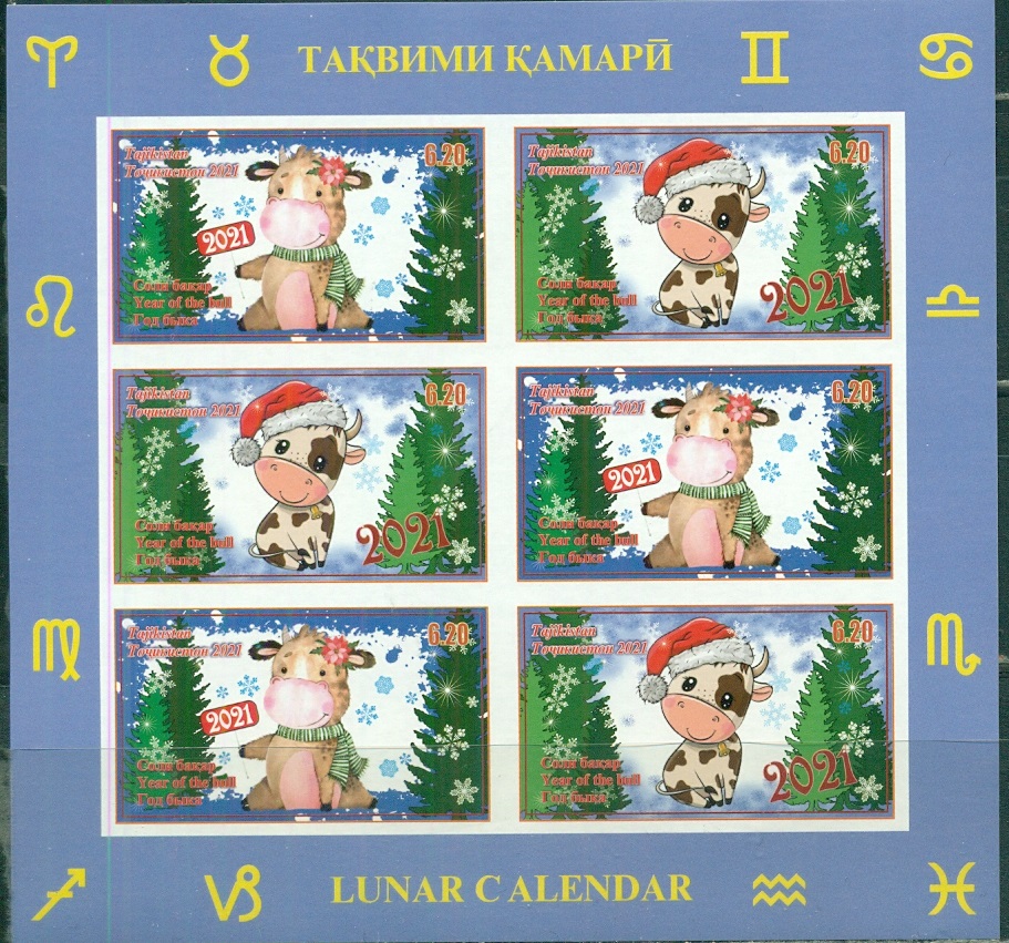 Таджикистан, 2021, Лунный Календарь, малый лист без зубцов