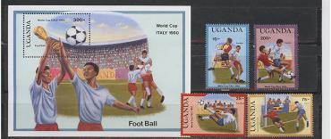 Уганда, ЧМ 1990, 1989, 4 марки+блок