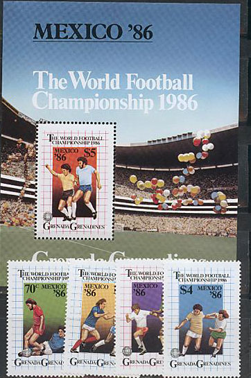 Гренада-Гренадины, ЧМ 1986, 4 марки+блок