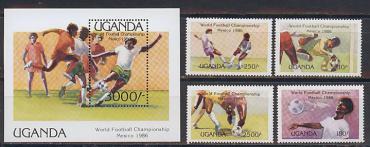 Уганда, ЧМ 1986, 4 марки+блок