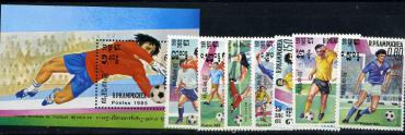 Кампучия, ЧМ 1986, 7 марок + блок, 1985 г.