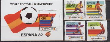 Мальдивы, ЧМ 1982, 4 марки+блок