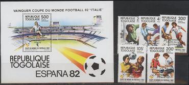 Того, ЧМ 1982, надпечатка, 5 марок+блок