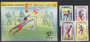 Туркс и Кайкос, ЧМ 1982, 4 марки+блок