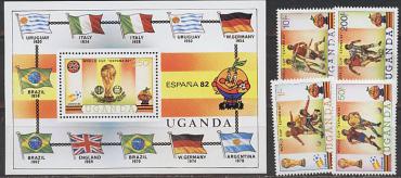 Уганда ЧМ 1982, 4 марки+блок, 1981 г.