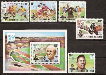 Чад, ЧМ 1978, надпечатки, 5 марок+блок