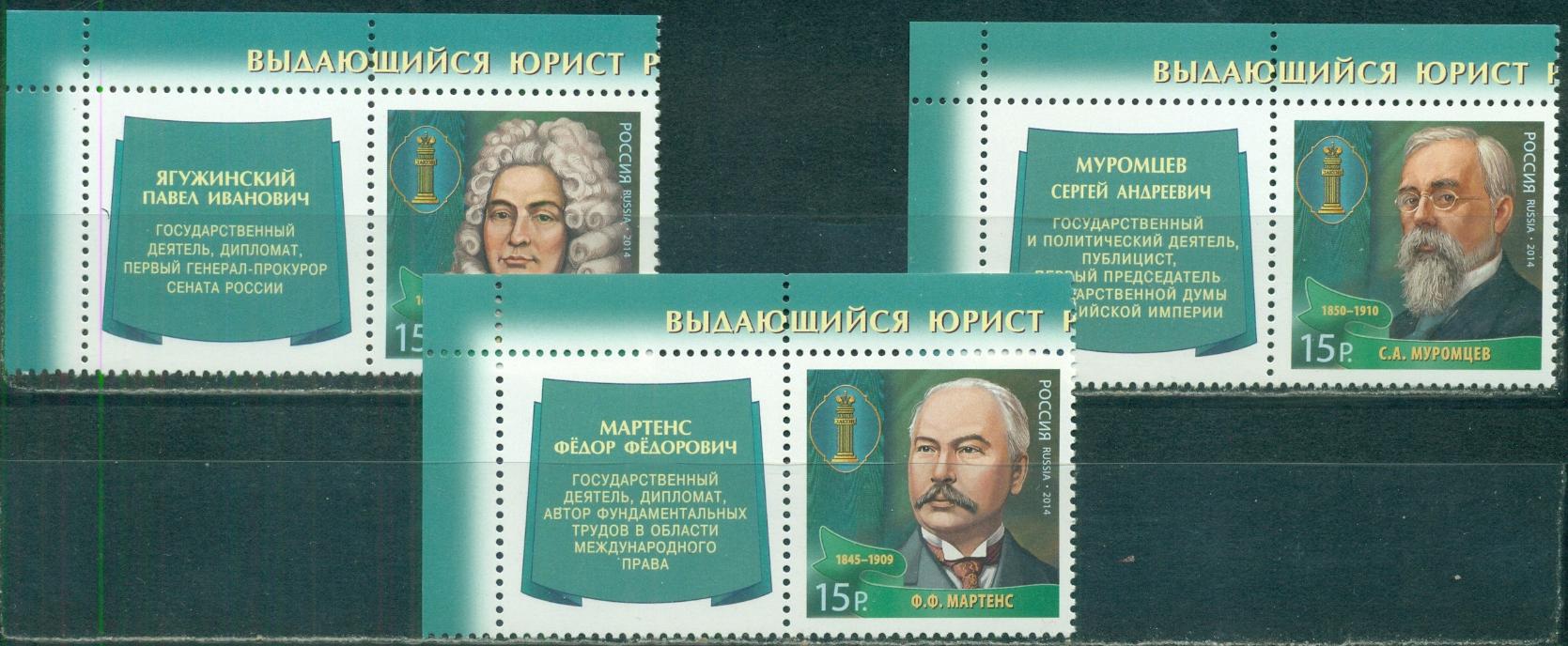 Россия, 2014, Юристы, 3 марки с купонами