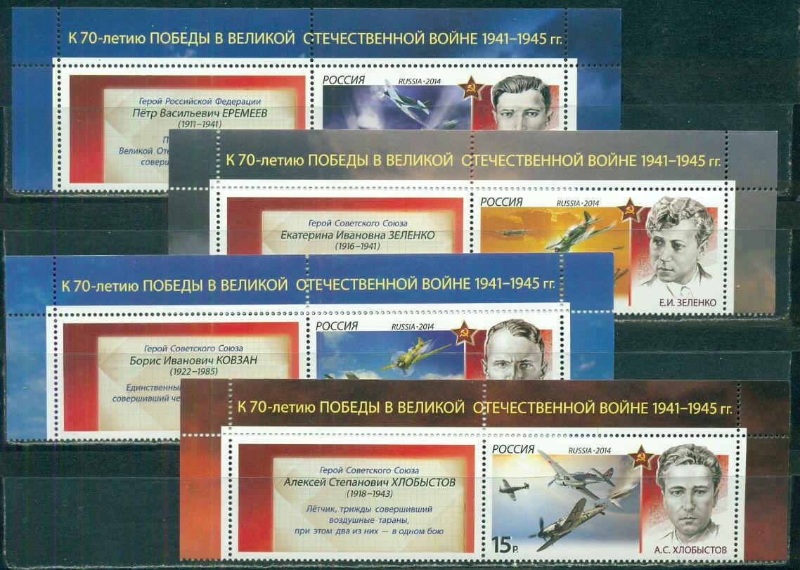 Россия, 2014, История авиации, Воздушные тараны, 4 марки с купонами