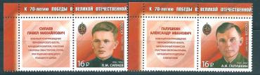 Россия, 2015, Военные контрразведчики А.И. Галушкин и П.М. Силаев, 2 марки с купоном