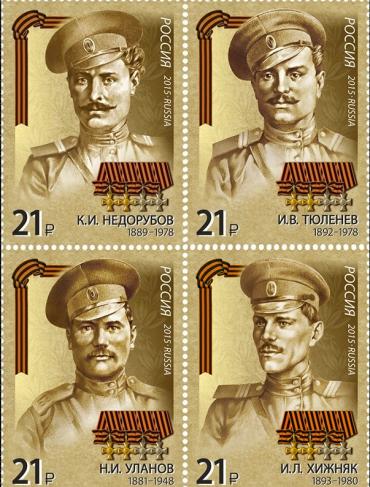 Россия, 2015. Герои 1ой Мировой Войны, 4 марки