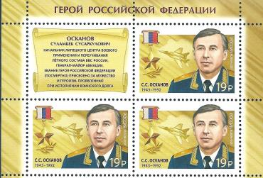 Россия, 2017, Герой России Осканов С.С, квартблок с купоном
