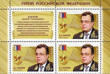 Россия, 2017, Герой России Карлов А.Г.,квартблок с купоном