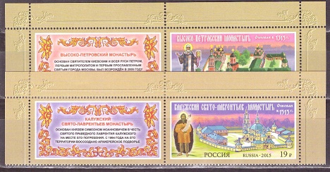 Россия, 2015. Монастыри, 2 сцепки с купонами