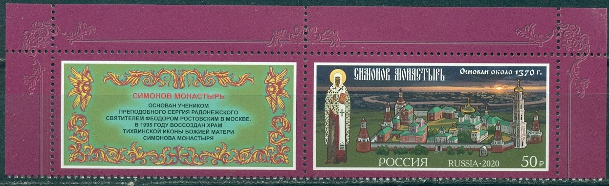 Россия, 2020, 650 лет Симонову монастырю, марка с купоном