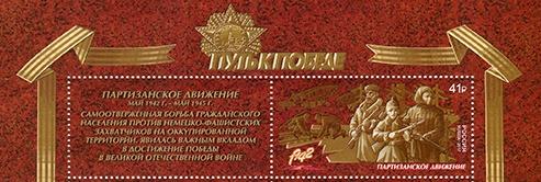 Россия, 2017, 75-летию Победы - "Путь к Победе"-6, Партизанское движение, сцепка с купоном