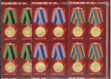 Россия, 2015, Медали "За освобождение", 3 квартблока без купонов