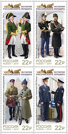 Россия, 2019, История Мундира, Фельдъегерская Связь, 4 марки