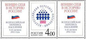 Россия, Перепись, 2002, 1 марка с зубцами и клеем, 2 купона