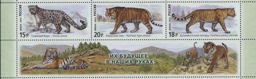 Россия, 2014, Фауна России, Большие Дикие кошки, 3 марки+купоны снизу