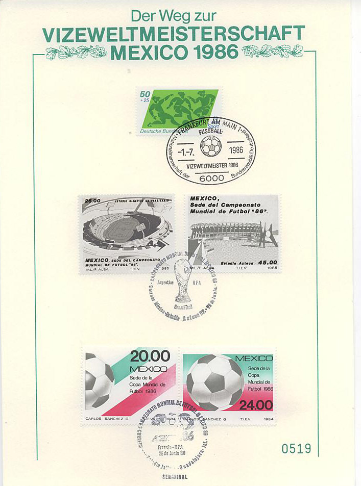 Мексика, ФРГ, 1986, лист со СГ В центре листа могут быть разные марки.