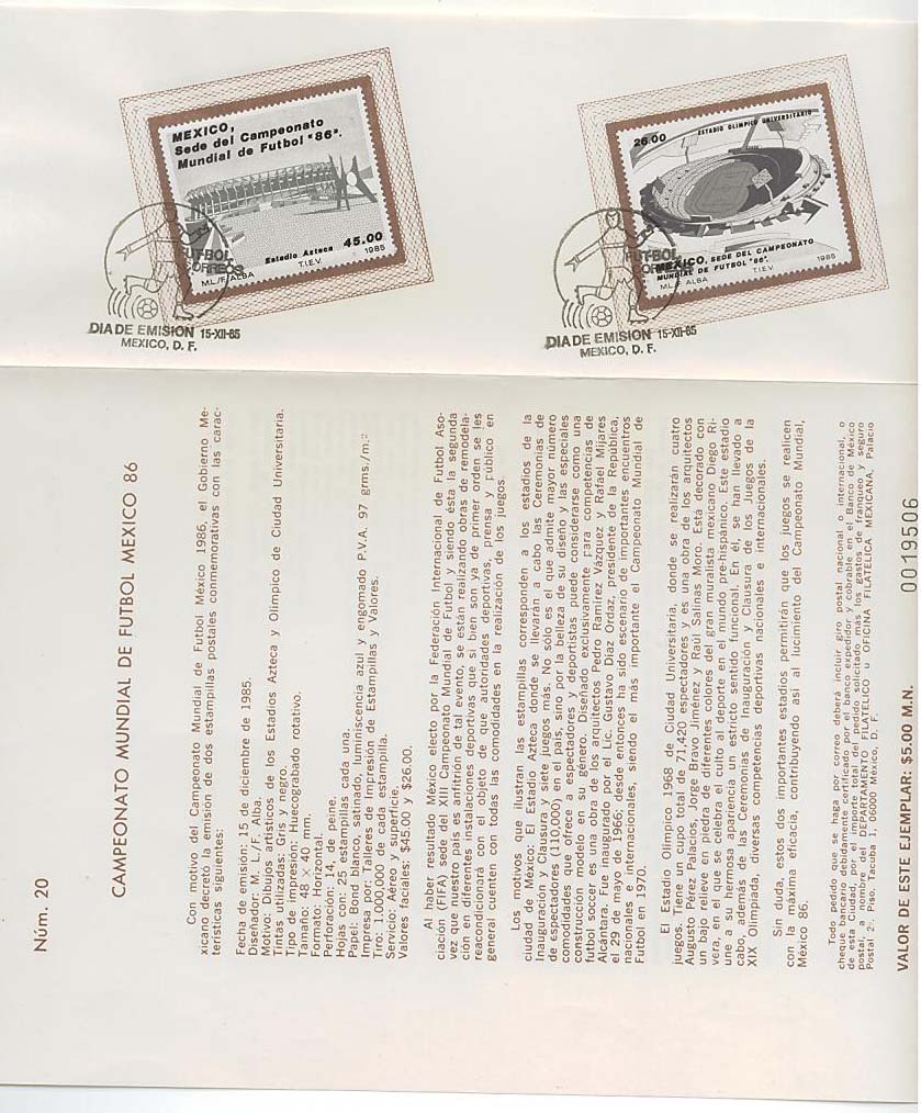 Мексика, ЧМ 1986, 2 марки 1985 г. на листе со СГ