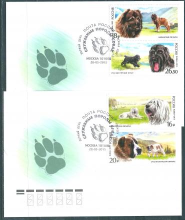 Россия, 2015, Служебные Породы Собак, 4 марки на 2 КПД