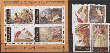 Танзания, 1986, Птицы, Аудюбон, 4 марки+блок