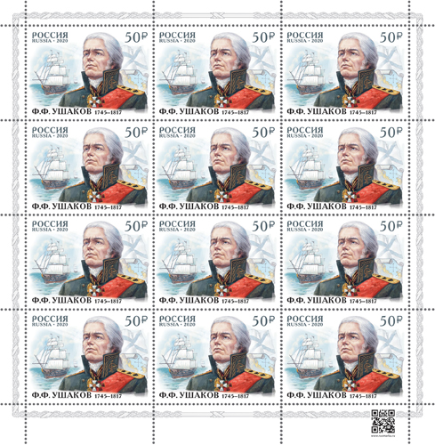 Россия, 2020, Адмирал Ф.Ф. Ушаков (1745−1817), лист