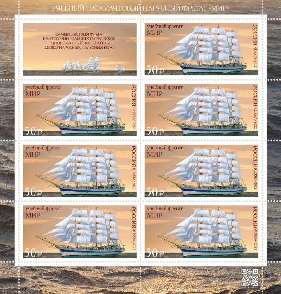 Россия, 2022, Учебное парусное судно "Мир", лист
