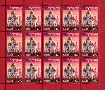 На почтовой марке изображён Храм-памятник на Крови г. Екатеринбурга.