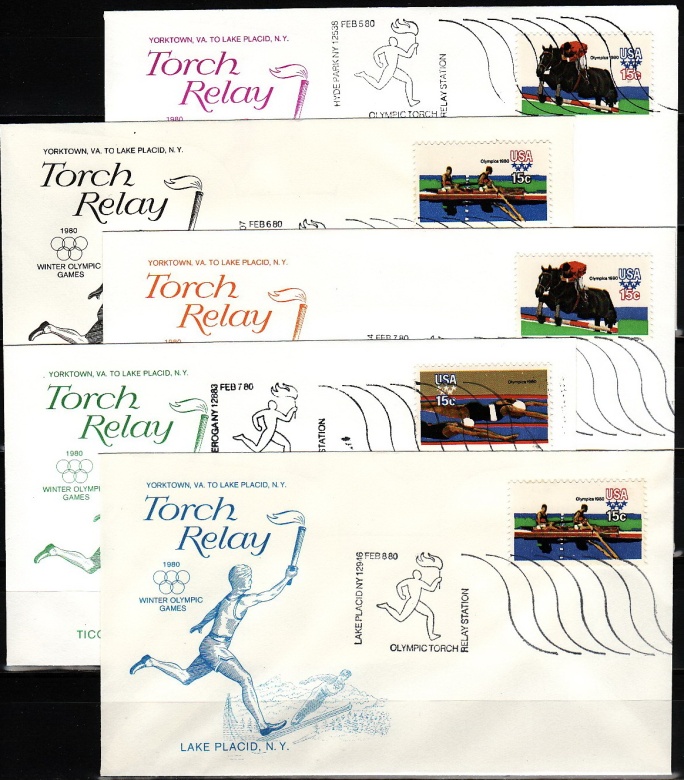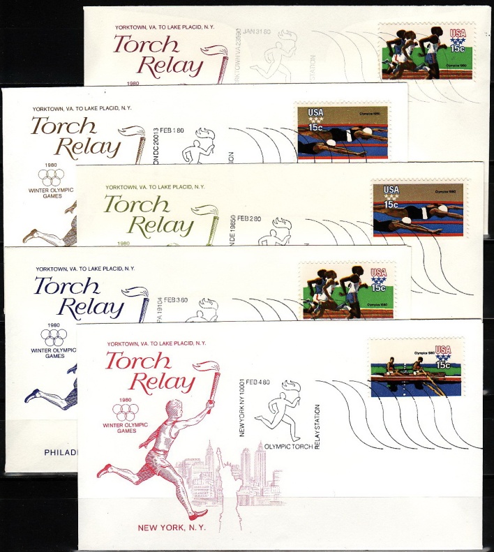 США, 1980, Лейк-Плэсид, Эстафета олимпийского огня, 10 конвертов, 2 скана