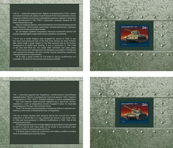 Россия, 2021, Танки, 8 люкс-блоков в буклете