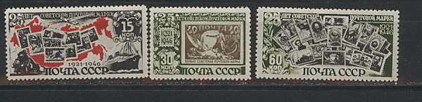 СССР, 1946-47, №1087-1089, 25 лет Советской Почтовой Марке, серия 3 марки...