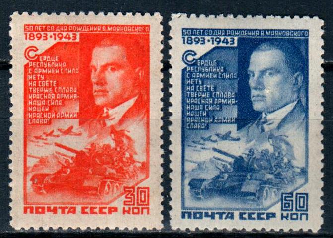 СССР, 1943, №869-70, В.Маяковский, серия из 2-х марок...