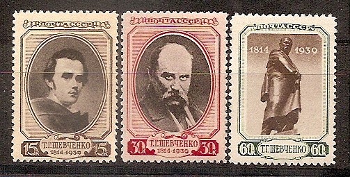 СССР, 1939, №673-75, Т.Шевченко, серия из 3-х марок...