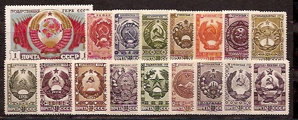 СССР, 1947, №1114-30, Гербы, серия из 17-ти марок...