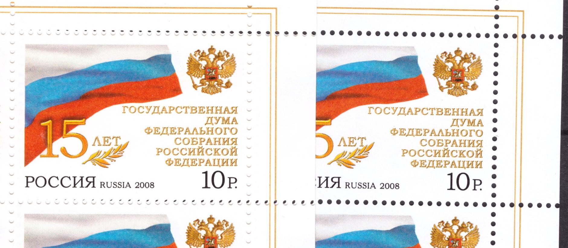 Россия, 2008, Федеральное Собрание и Дума, жёлтая и белая бумага. Желтоватая бумага - на левом листе.