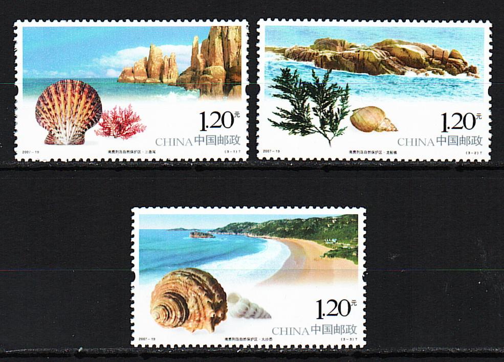 China, 2007, Marine Fauna, Shells, Mollusks, 3v